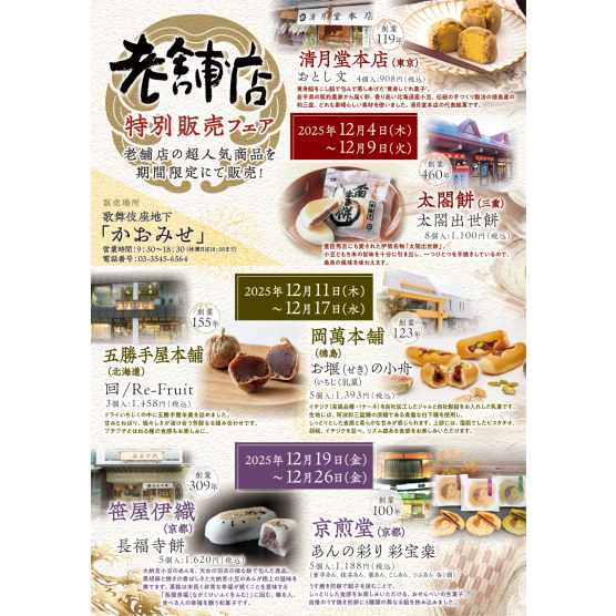- 1階お土産処「木挽町」のおすすめ品(12月)