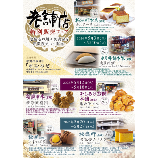- 5月限定!老舗店特別販売フェアのお知らせ~地下2階「お土産処かおみせ」