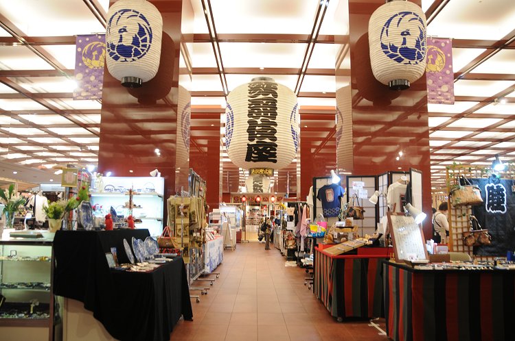 店頭には、上演パンフレットがちょうど入る、美しい帯のトートバッグが百花繚乱。