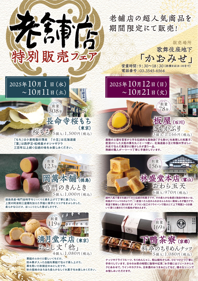 10月限定!老舗店特別販売フェアのお知らせ~地下2階「お土産処かおみせ」
