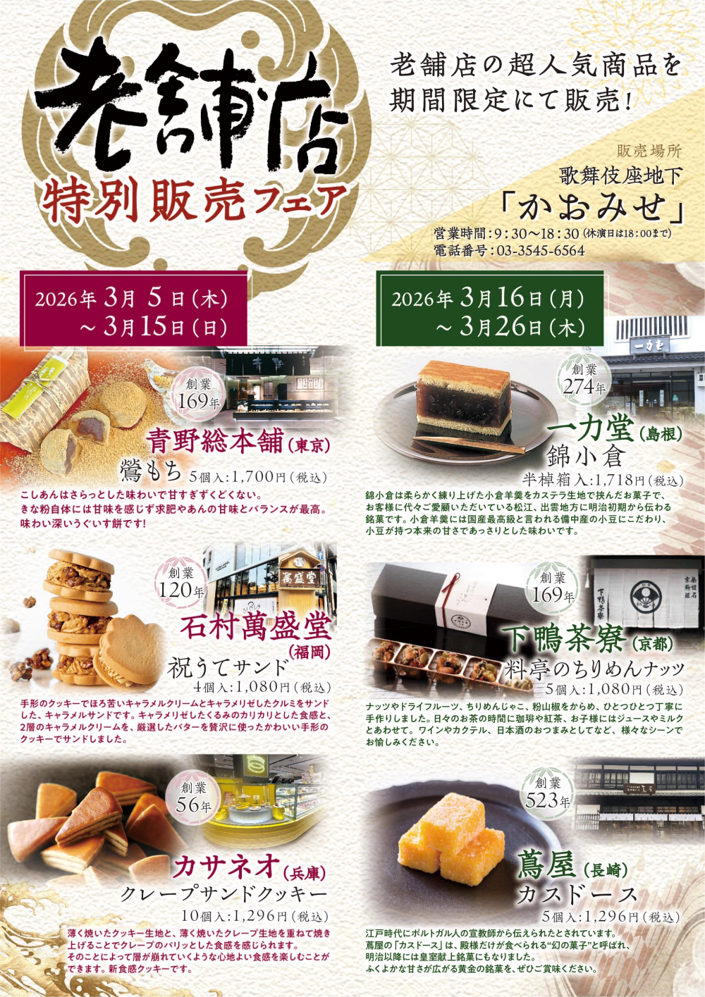 3月限定!老舗店特別販売フェアのお知らせ~地下2階「お土産処かおみせ」