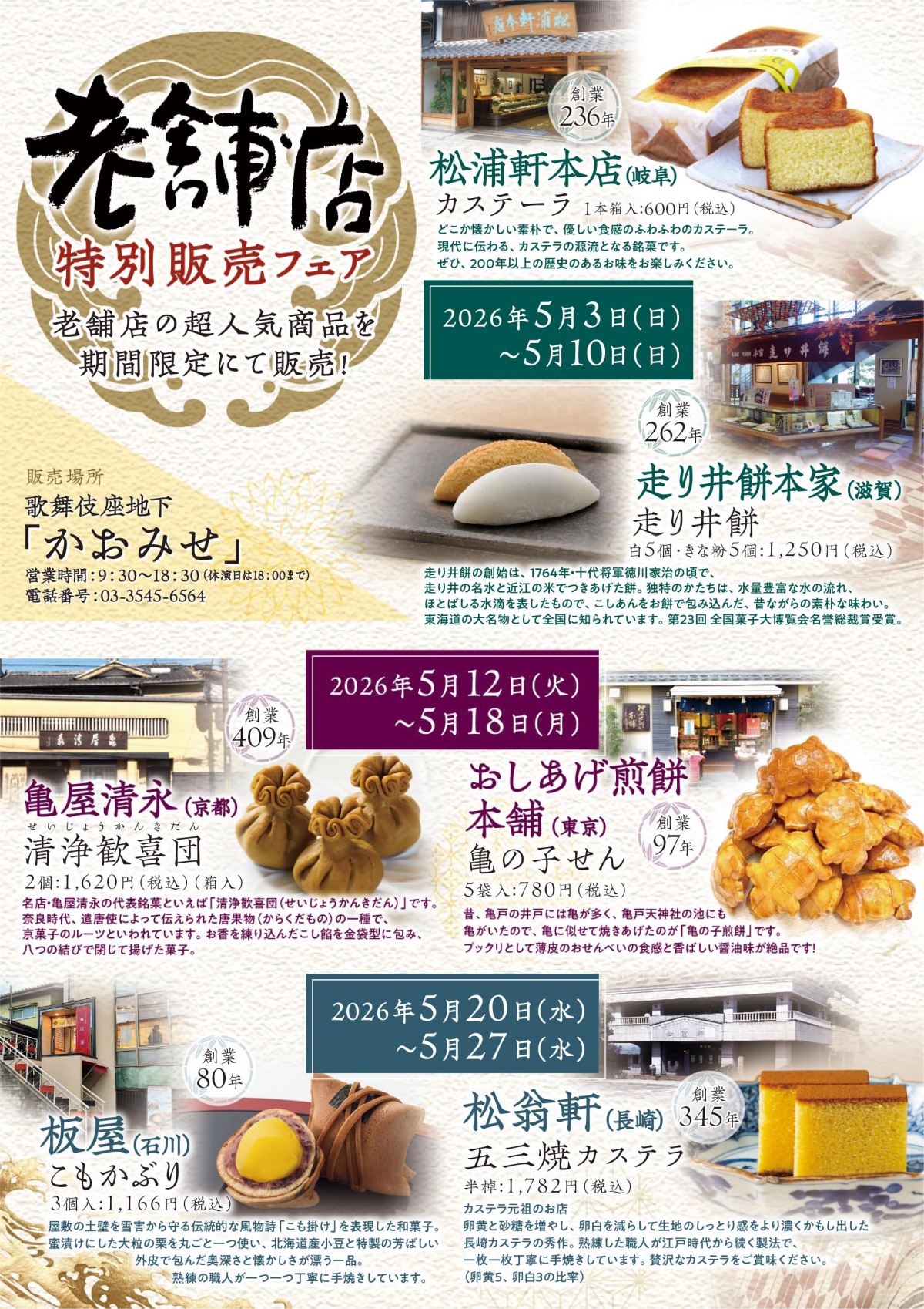 5月限定!老舗店特別販売フェアのお知らせ~地下2階「お土産処かおみせ」