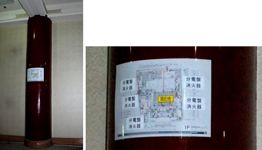 作業員が迷子にならないよう劇場内に掲示された地図(現在地と作業ルート、避難経路などが記載)