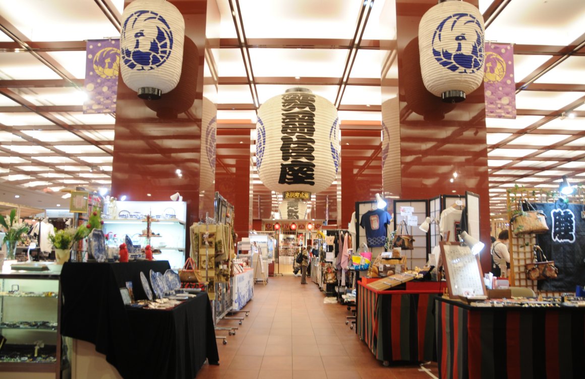 日本の文化を最大限に感じることができるお祭り広場。歌舞伎座関連のグッズやお土産をたくさん取り扱っております。