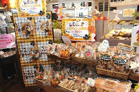 ハロウィンの雑貨が全て600円。さらに…「ハロウィンパーティーあられ」や「ハロウィンまん」など、ハロウィンのお菓子を一緒にご購入で、100円引きとなります!