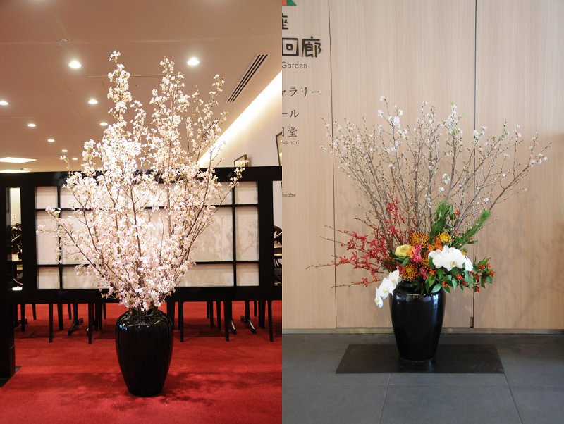 今年も「啓翁桜(けいおうざくら)」が届きました! 更新日:2026.01.02 地下2階木挽町広場の啓翁桜 一足早い春を告げる「啓翁桜」が、今年も山形県から届きました。 凛とした佇まいが見る人を魅了します。 新春に相応しい華やかな彩をお楽しみください。 3階お食事処花篭(左)・5階エレベーターホール(右)の啓翁桜 歌舞伎座地下2階「木挽町広場」正面、並びに3階お食事処「花篭」の入口、及び5階エレベーターホール横でご覧いただけます。