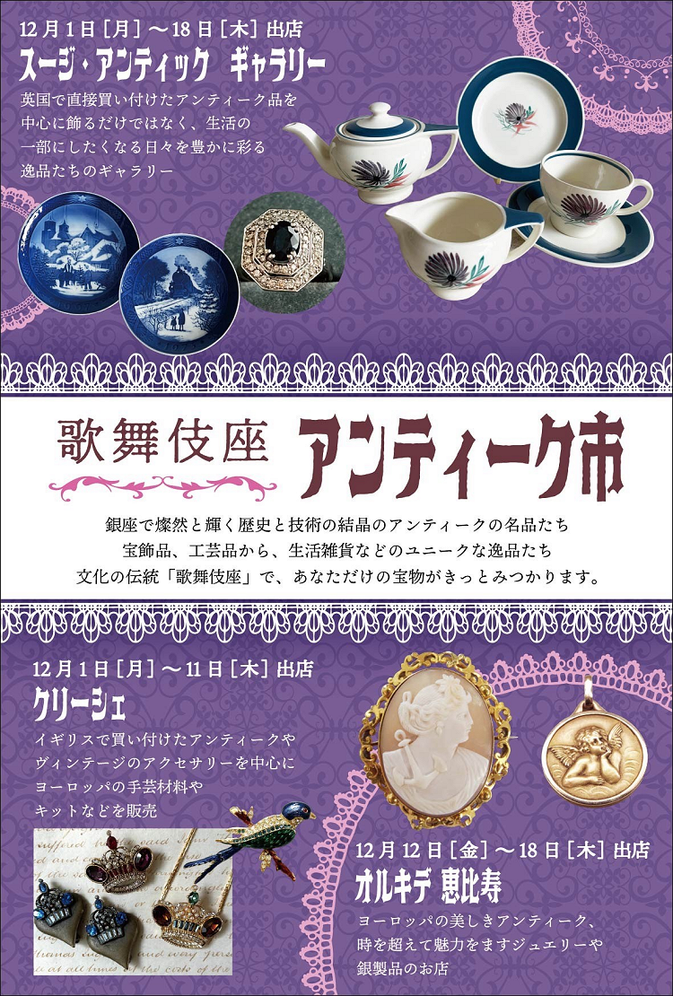 12月「歌舞伎座アンティーク市」開催のお知らせ~地下2階木挽町広場