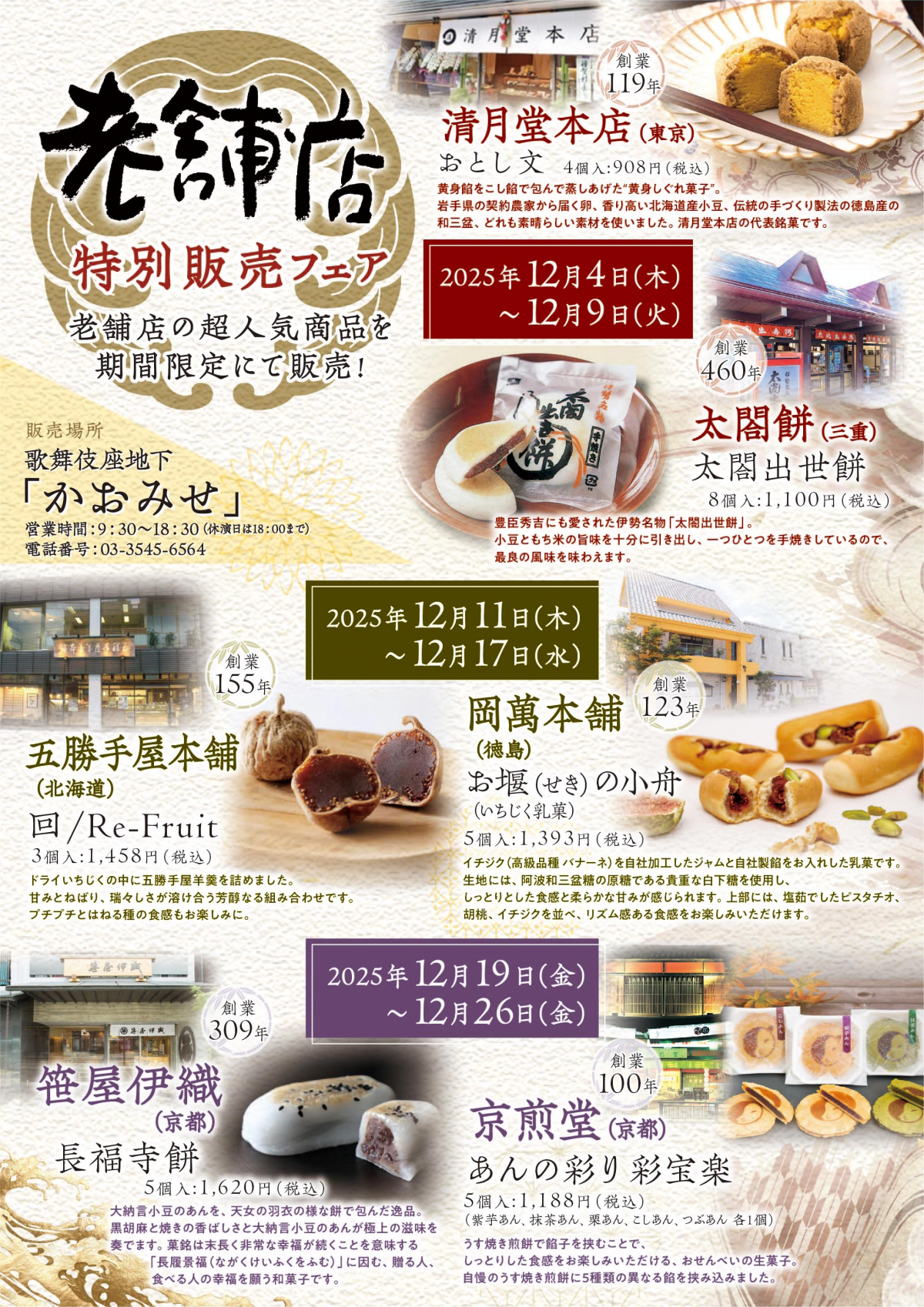 12月限定!老舗店特別販売フェアのお知らせ~地下2階「お土産処かおみせ」