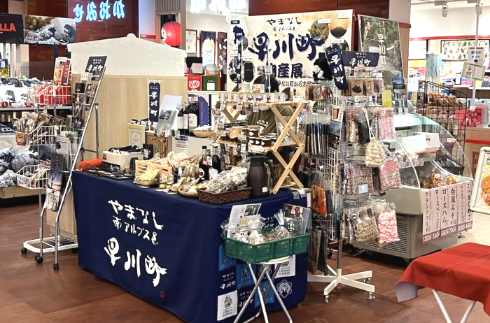 1月早川町物産展を開催~歌舞伎座地下2階 木挽町広場 更新日:2025.12.28 1月2日(金)~25日(日)、毎年恒例となりました“日本一人口の少ない町”と知られている山梨県・早川町の物産展が、歌舞伎座地下2階「木挽町広場」で開催されます。 新鮮な山の幸や、ベーコン・フランクフルトなどのお肉類、白鳳みそなどの特産品も! 1月には歌舞伎座LINEでのプレゼントも企画中。見て選んで味わって、楽しさいっぱいです。ぜひご来店ください! 2024年早川町物産展の様子