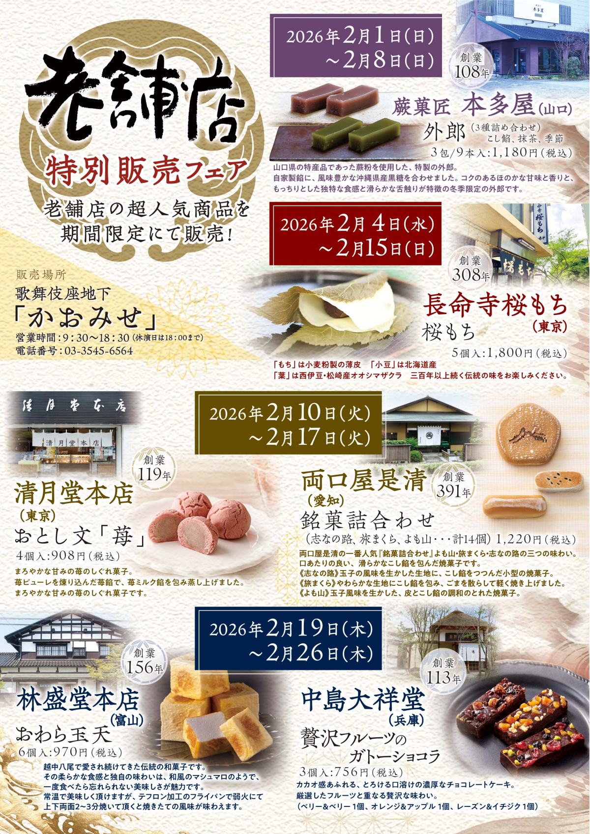 2月限定!老舗店特別販売フェアのお知らせ~地下2階「お土産処かおみせ」