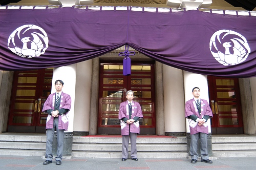 | 1年で最も華やかな時期を迎えた歌舞伎座では、『坂田藤十郎襲名披露興行』が行なわれています。藤(とう)さまに因み、場内のいたるところでは『紫』や『藤色』を目にする事が出来るのですが、これらの色に対して皆様はどのようなイメージを持たれますか?『気品』『優雅』『風格』などいろいろありますが、古代の日本では『高い地位』を表す時に使われていたようです。 |
