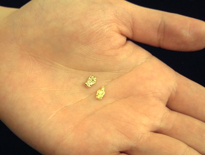 よ~く御覧下さい。これは一体何でしょう?身長は約5mm。ルーペを通して見ないと分からない位の大きさです。正解は『恵比寿様』と『大黒様』なのです。